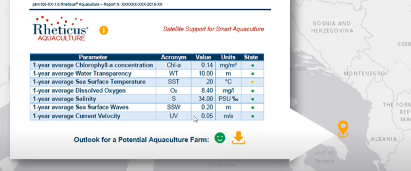 Rheticus Aquaculture is a subscription and cloud-based service that provides geospatial information data and forecasting models and statistics based on information derived from satellites and in situ observations.