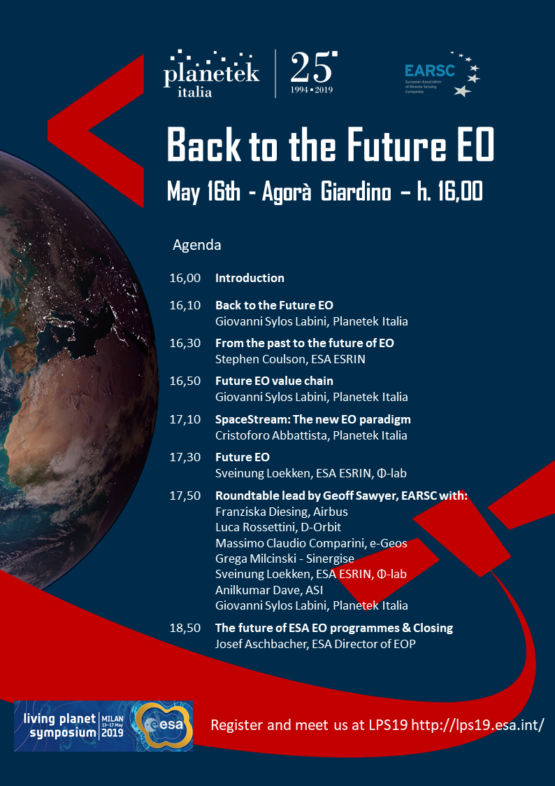 Living Planet Symposium 2019 - Milano dal 13 al 17 Maggio. Conferenza "Back to the FutureEO" - 16 Maggio 2019, ore 16,00.